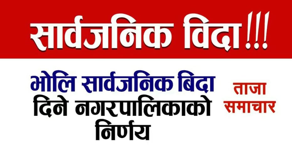 काठमाडौं–काभ्रेको नमोबुद्ध नगरपालिकाले भोली २७ गते कृष्ण जन्माष्टमीको दिन सार्वजनिक बिदाको सुचना प्रकाशित गरिएको छ । आज एक सुचना प्रकाशित गर्दै नमोबुद्ध नगरपालिकाको कार्यलय र मातहतका सम्पूर्ण वडा कार्यलयहरु, स्वास्थ्य तथा शैक्षिक संस्थाहरु समेत बन्द रहने सुचनामा उल्लेख गरिएको छ ।
