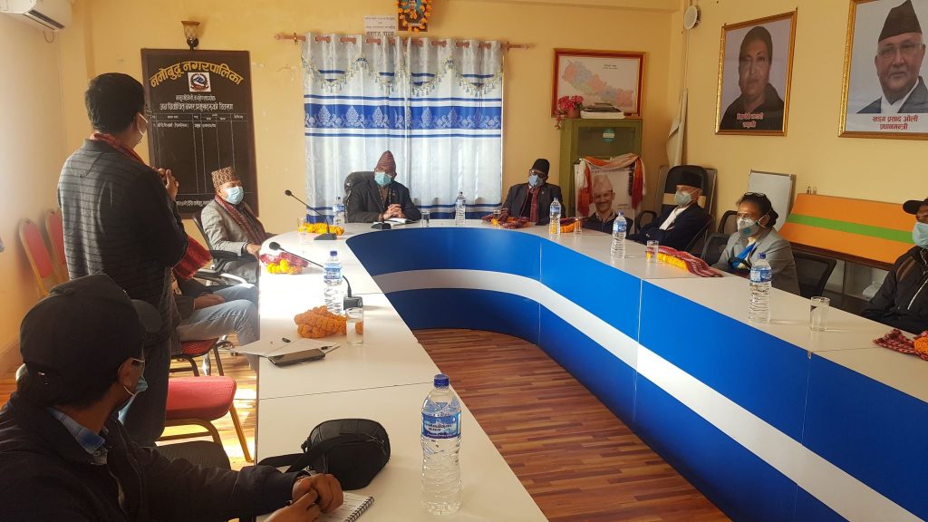 नगर प्रमुख टिपी शर्मा तिमल्सिनाको अध्यक्षतामा राष्ट्रपति कार्यालयका सल्लाहकार लालबाबु यादव, लक्ष्मी कार्की, राष्ट्रिय योजना आयोगका सदस्य डा. कृष्णप्रसाद ओली, वन तथा वातावरण मन्त्रालयका सचिव विश्वनाथ ओली, राष्ट्रपति कार्यालयका स्वकीय सचिव सोम राई, राष्ट्रपति कार्यालयका स्वकीय उपसचिव भवानी कार्की, इसिमोड प्रतिनिधि नन्द अग्रवाल, सिप्रेडका कार्यकारी निर्देशक केशवदत्त जोशी लगायतको सहभागतिामा अनुगमन एवं छलफल सम्पन्न भएको हो ।