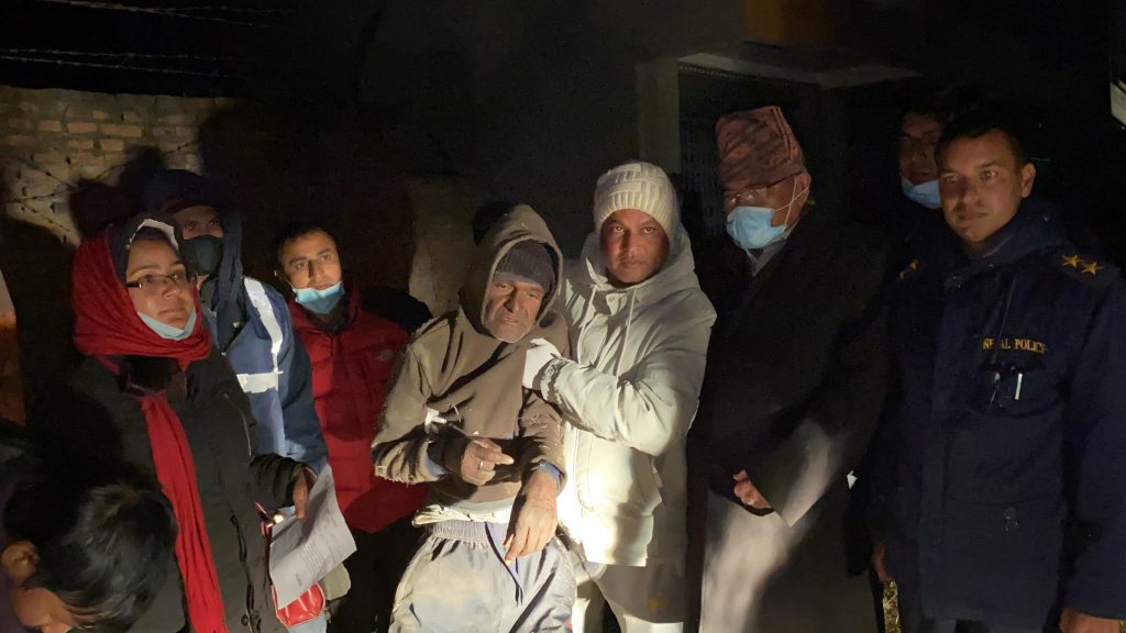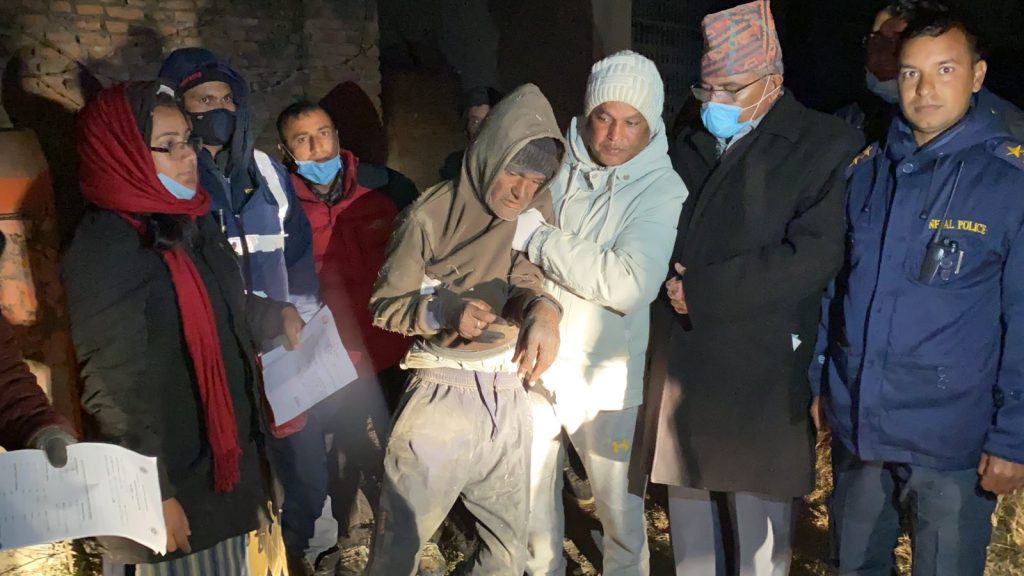 ती वृद्धको उद्धारका लागि नमोबुद्ध नगरपालिका ७ का वडाअध्यक्ष धर्मसिं लामा, समाजसेवी शंकर गिरी, प्रहरी चौकी भकुण्डेको टोली समेत खटिएको थियो । स्थानीय समाजसेवी गिरीले लामो समयदेखि उनलाई खानपानमा सहयोग गर्दै आएका थिए । गिरी लगायतको टोलीको नेतृत्वमा उनलाई केही दिनअगाडि मेथिनकोट अस्पतालमा उपचारका लागि लगिएको थियो ।