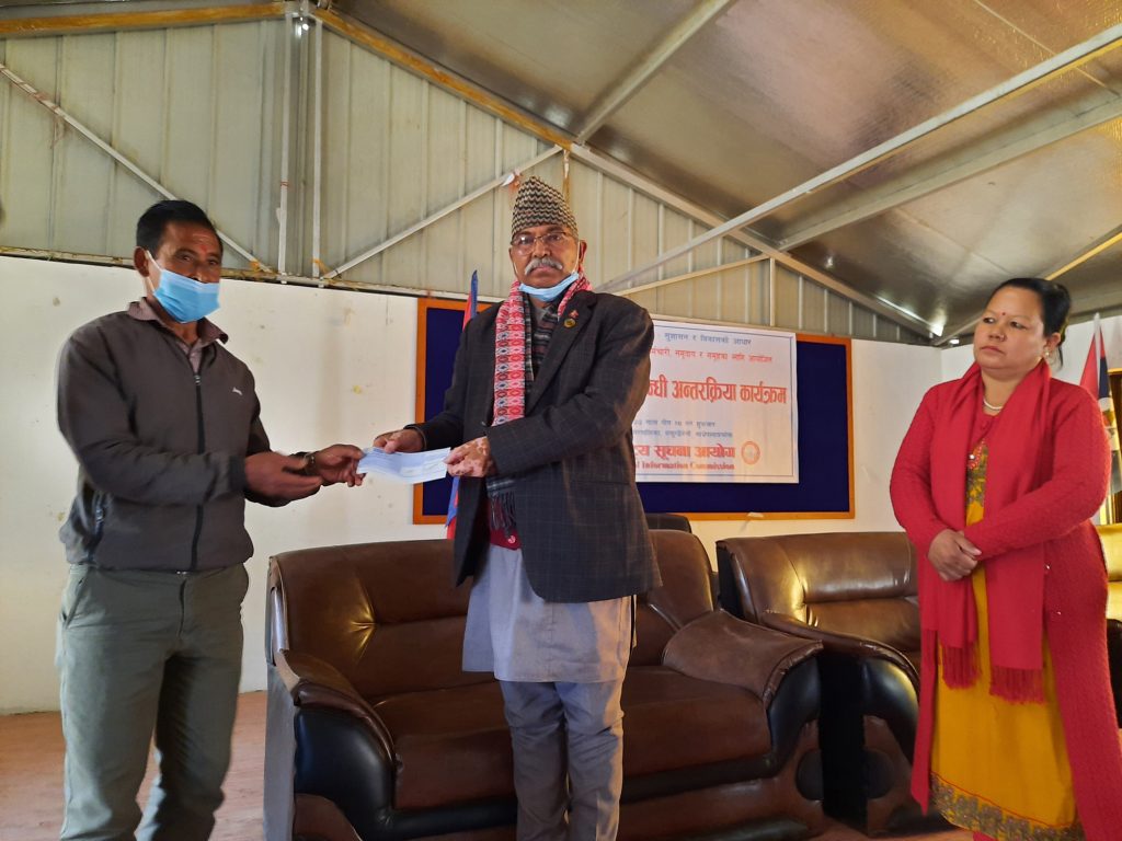 नगर प्रमुख टिपी शर्मा तिमल्सिनाले पीडितलाई आर्थिक सहयोगको चेक हस्तान्तरण गर्दै सहयोग गर्ने अभियानको सुरुवात गरेका हुन् । नमोबुद्ध नगरपालिकाले यही बर्षदेखि कार्यविधि निर्माण गरी विपदमा परेका नगरबासीलाई सहयोग गर्न थालेको हो ।