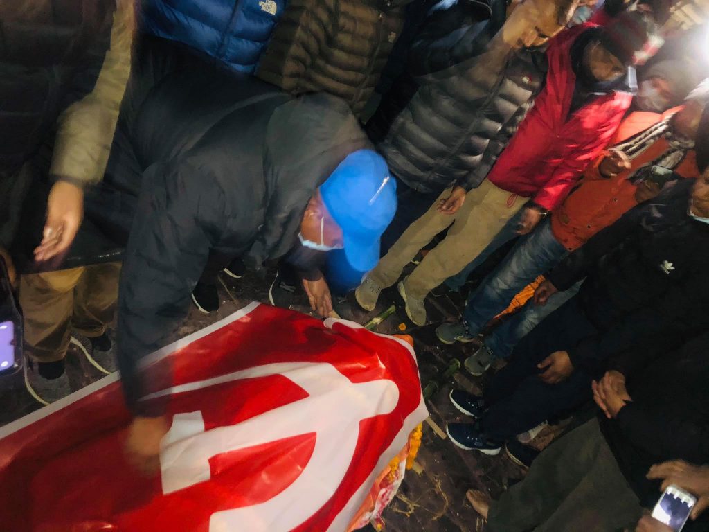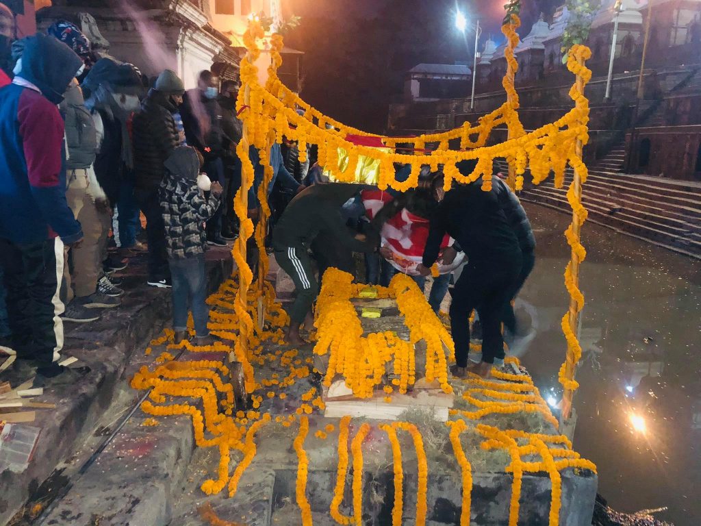मृतक अर्जुन कोईरालाको पार्थिव शरीरलाई पशुपतिस्थित बुघवार राती नै नेपाल कम्युनिष्ट पार्टीको झण्डा ओढाएर सम्मान गरेपश्चात हिन्दुधर्म संस्कार अनुसार अन्त्योष्टि गरेका थिए । कोईरालाको पार्थिव शरीरमा पार्टीको झण्डा ओढाई सम्मानको साथ श्रद्धान्जली अर्पणका लागि बाग्मती प्रदेश सभा सदस्य माननीय रत्न ढकाल, नमोबुद्ध नं.पा वडा नं.५ का वडाध्यक्ष बुद्ध सिं तामाङ, स्थानीय नेता बुद्ध सिं लामा, डृप्साङ लामा, सिंग मोक्तान, बाबुराम काईराला लगायतका नेताहरुको उपस्थिति रहेका थिए ।