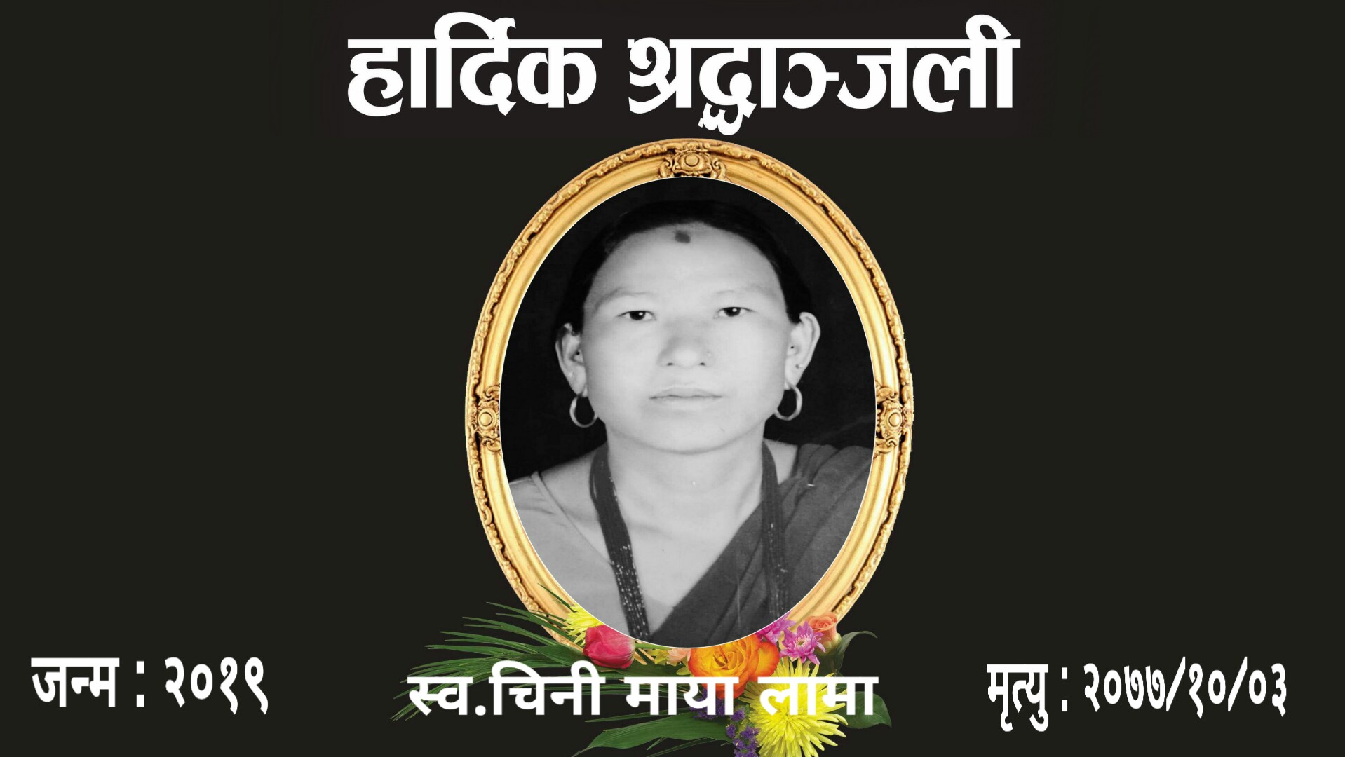 मृतक चिनी माया लामाको निधन भएको १३ औं पुण्य तिथिको अवसरमा भोलि देखि बौद्ध धर्म अनुसार घेवा शुरु हुने पारिवारिक श्रोतले जानकारी दिएका हुन ।