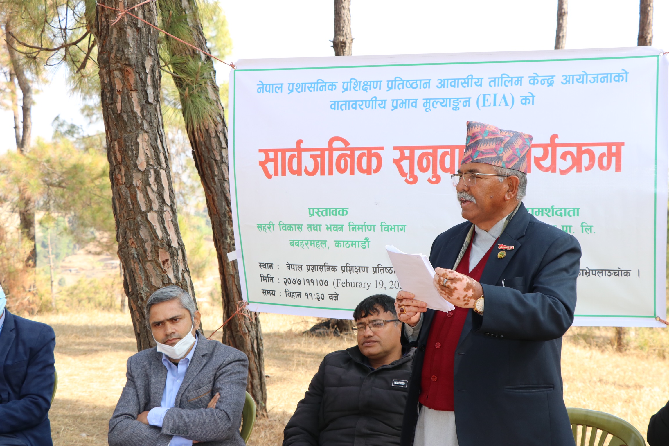 भकुण्डे–नमोबुद्ध नगरपालिका–२ मा निर्माण हुने नेपाल प्रशासनिक प्रशिक्षण प्रतिष्ठान (स्टाफ कलेज) को आवासीय तालिम केन्द्र निर्माणसम्वन्धी वातावरणीय प्रभाव मुल्यांकनको सार्वजनिक सुनुवाई शुक्रबार सम्पन्न भएको छ ।
