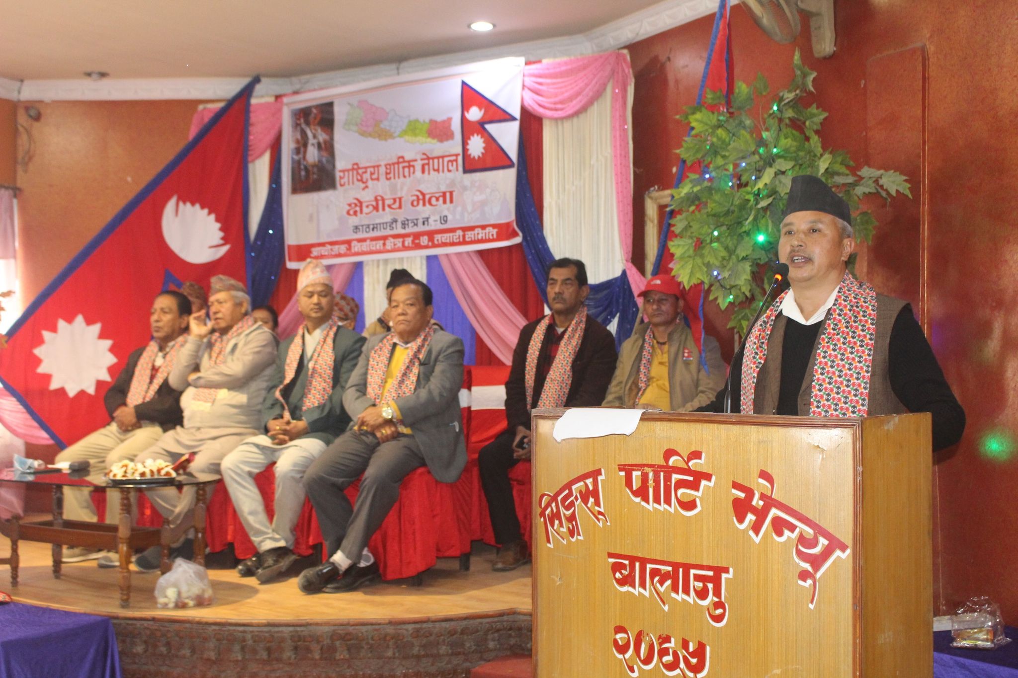 बालाजुको सिंगस् पार्टी भेन्युमा भएको कार्यक्रम को संयोजन र ब्यबस्थापन समेत राष्ट्रिय शक्ति नेपालका केन्द्रीय अभियान्त देबेन्द्र महर्जनले गरेका थिए । क्षेत्र नं .७ काठ्माडौले कार्यक्रम भब्यरुपमा सफल पार्न साथ र सहयोग गर्ने सबैलाई आभार समेत ब्यक्त गरेको थियो ।