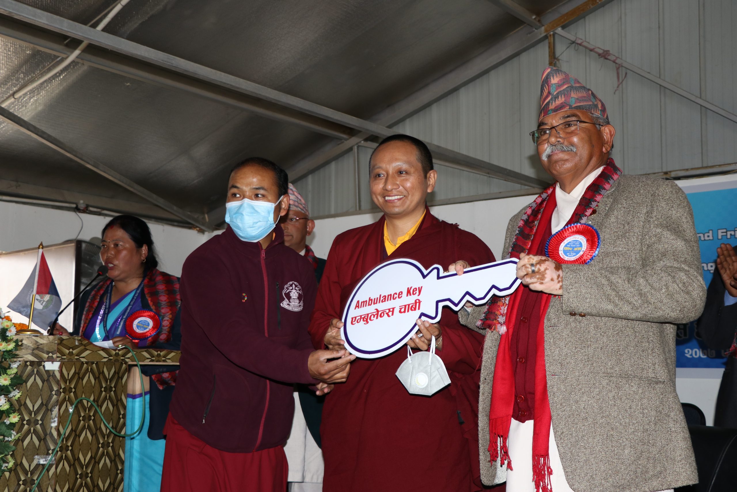 कार्यक्रममा फेन्दे फाउण्डेशनका केम्पो चोङजीले एम्बुलेन्स सहयोग उपलव्ध गराएकोमा सहयोगी दाताहरुप्रति आभार प्रकट गरेका थिए ।