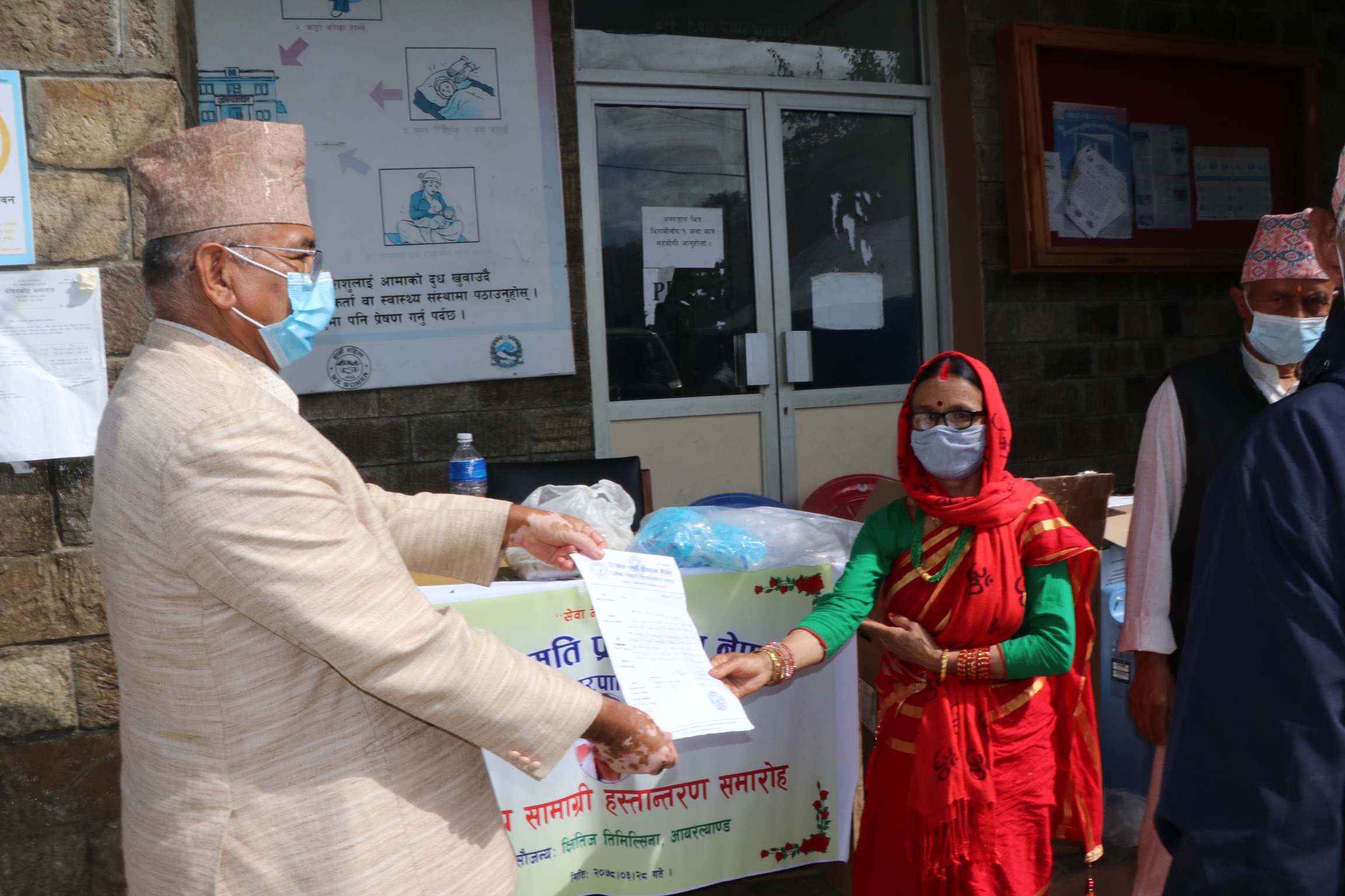 प्रतिष्ठानले दुई थान अक्सिजन कन्सन्ट्रेटरसहितका स्वास्थ्य सामग्री नमोबुद्ध नगरपालिकामार्फत सोमबार बिहान एक कार्यक्रमकाबीच हस्तान्तरण गरेको हो । प्रतिष्ठानकी अध्यक्ष सावित्री तिमल्सिनाले नगर प्रमुख टिपी शर्मा तिमल्सिनालाई स्वास्थ्य सामग्री हस्तान्तरण गरेकी थिइन् । नगर प्रमुख तिमल्सिनाले प्रमुख प्रशासकीय अधिकृत राजन पौडेलमार्फत मेथिनकोट अस्पतालका अध्यक्ष कृष्ण खनाललाई ती सामग्री हस्तान्तरण गरे ।