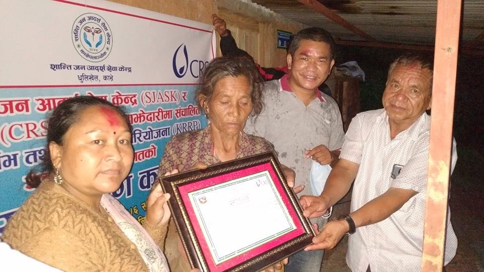 शान्ति जन आदर्श सेवा केन्द्र र सिआरएस नेपालले ती अति विपन्न परिवारको भूकम्प प्रतिरोधी घर निर्माण गरेको जिम्मा लिएपछि विपन्न परिवारले नयाँ, पक्की र भूकम्प प्रतिरोधी घर पाएका छन् ।
