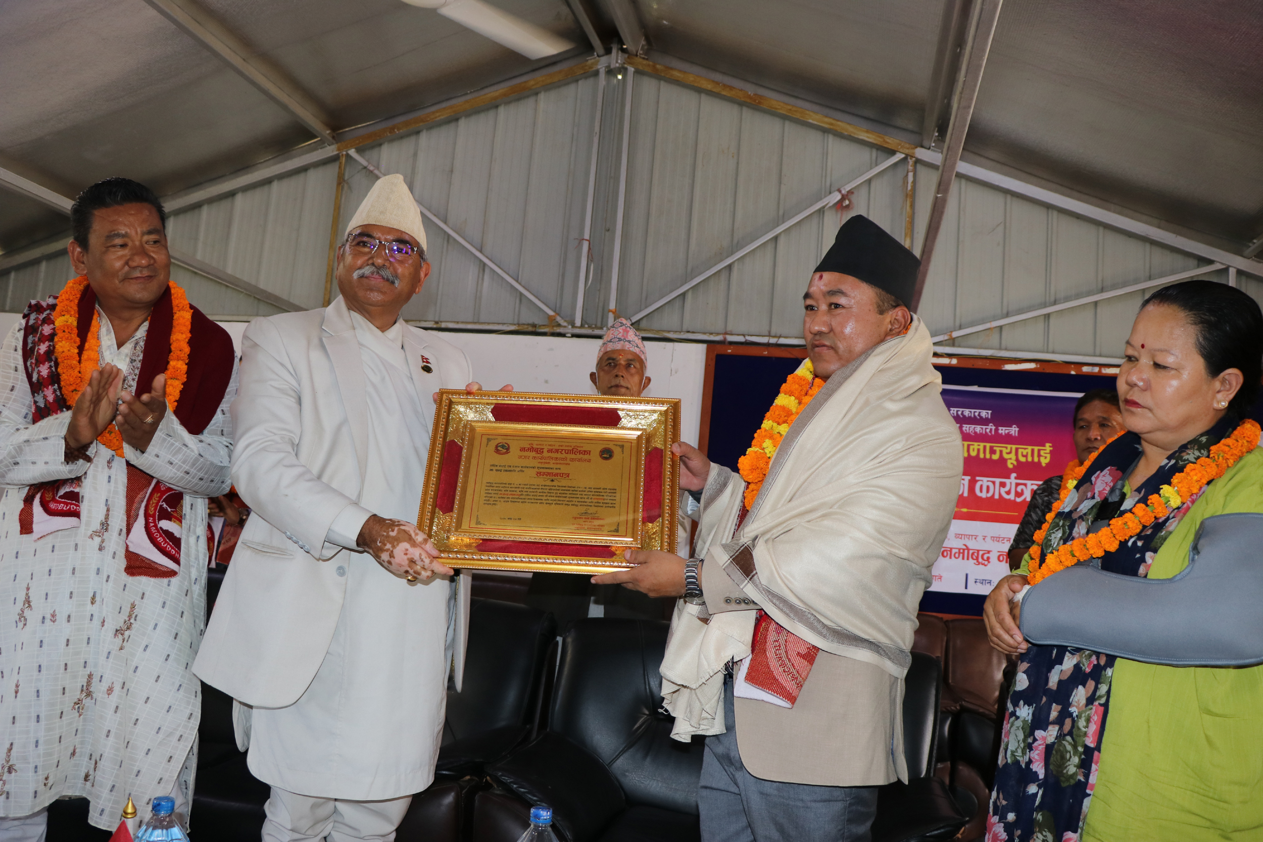 काठमाडौ । बागमती प्रदेश सरकारका भूमि व्यवस्था, कृषि तथा सहकारी मन्त्री चन्द्र लामालाई गृहनगर नमोबुद्धमा भव्य सम्मान गरिएको छ ।