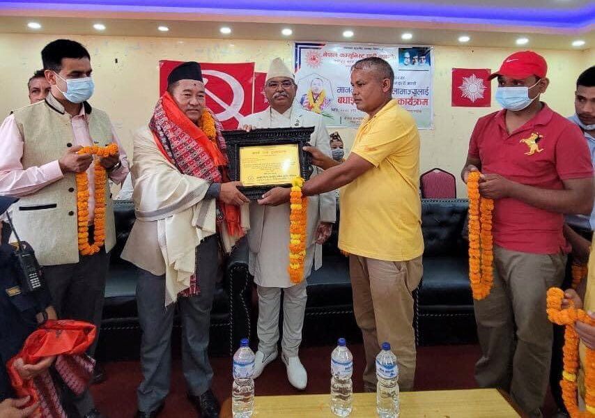 नेकपा एमाले नमोबुद्ध नगर कमिटीले मन्त्री चन्द्र लामालाई गर्‍यो सम्मान