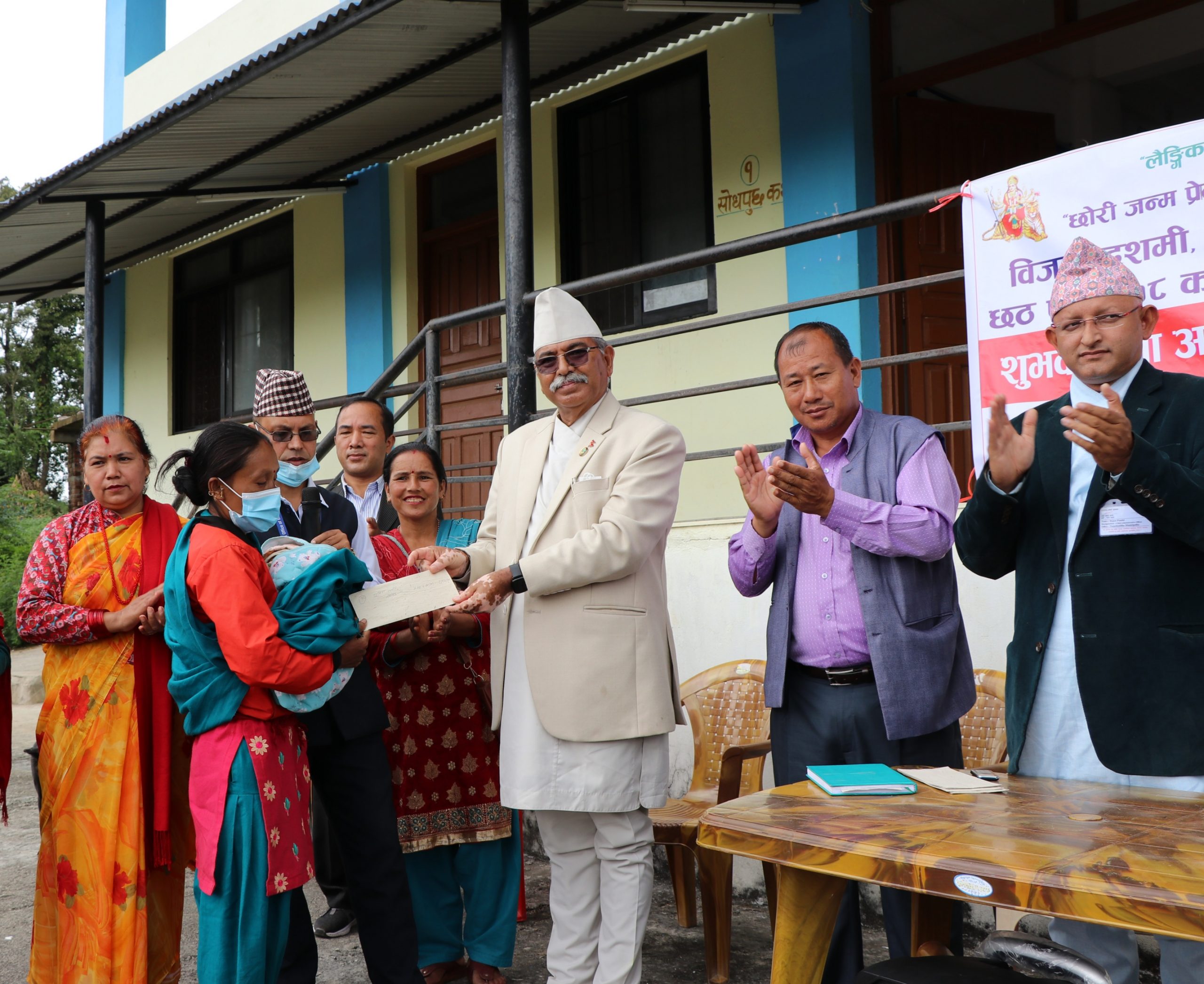 कार्यक्रममा नगर प्रमुख टिपी शर्मा तिमल्सिनाले यही साउन १ गतेदेखि असोज १४ गतेसम्मको अवधीमा छोरीलाई जन्म दिने तथा स्वास्थ्य संस्थामा सुत्केरी हुने १४ जना आमालाई नगद प्रदान गरेका हुन् । नमोबुद्ध नगरपालिका वडा नं. ९ ले विगतका बर्षदेखि नै दाप्चा स्वास्थ्य चौकीमार्फत छोरी जन्म प्रोत्साहन कार्यक्रम सञ्चालन गर्दै आएको छ । कार्यक्रममा सुत्केरी आमालाई छोरी जन्माएवापत वडाबाट प्रदान गरिने ५ हजार रुपैयाँ, स्वास्थ्य संस्थामा सुत्केरी भएवापतको दुई हजार रुपैयाँ, एम्बुलेन्स खर्चवापत १८ सय रुपैयाँ, अन्य स्वास्थ्य संस्थामा रिफर भएर जानेलाई थप २ हजार रुपैयाँ र चारपटक गर्भ जाँच गराएवापतको ८ सय रुपैयाँ एकमुष्ट रुपमा प्रदान गरिएको थियो ।