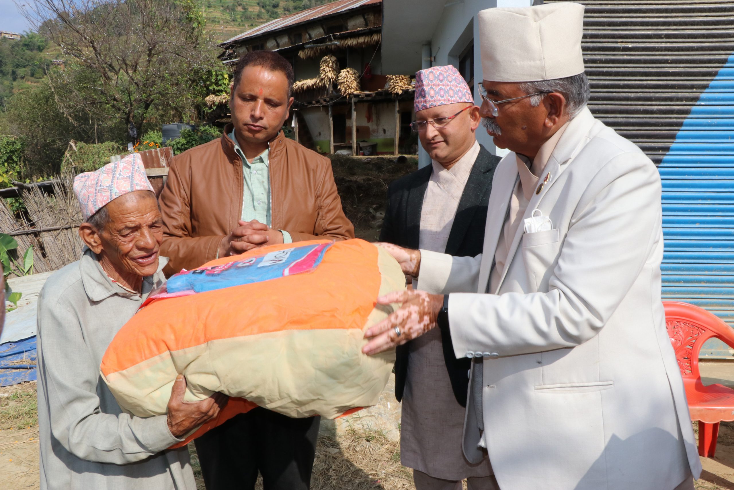 नगर प्रमुख तिमल्सिनाले जेष्ठ नागरिकसँग आशिर्वाद लिनका लागि आफूहरु घरघरमा आइपुगेको बताए । ‘हामीले सहयोग दिने भन्दा पनि यहाँहरुबाट आशिर्वाद लिने उद्देश्यले यहाँ आएका हौं, तिमल्सिनाले भने । नगरपालिकाले विगतका बर्षदेखि नै जेष्ठ नागरिक लक्षित कार्यक्रमहरु सञ्चालन गरेको र आगामी दिनमा पनि त्यसलाई निरन्तरता दिन तिमल्सिनाले बताए । जेष्ठ नागरिकका ज्ञान, सीप र अनुभवलाई लिँदै समृद्ध नगरको निर्माणमा आफूहरु लागिपरेको उनले बताए । सबै वडामा वडा कार्यालय र स्वास्थ्य संस्थाको भवन निर्माण गरेको तथा सडक निर्माणलाई तीब्रता दिइएको पनि उनले बताए ।