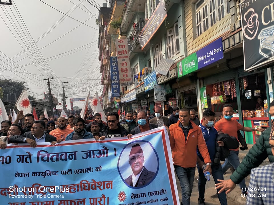आँपटारी, हाकिमचोक, वीरेन्द्र क्याम्पस, शहीदचोक, गैंडाकोट, केन्द्रीय बसपार्क, विशालचोक लगायत स्थानबाट जुलुस निस्किएका छन् । ठूला जुलुस भने भरतपुर बसपार्क, आँपटारी र गैंडाकोटबाट निकालिएको एमाले चितवन अध्यक्ष पार्वती रावलले जानकारी दिइन् ।