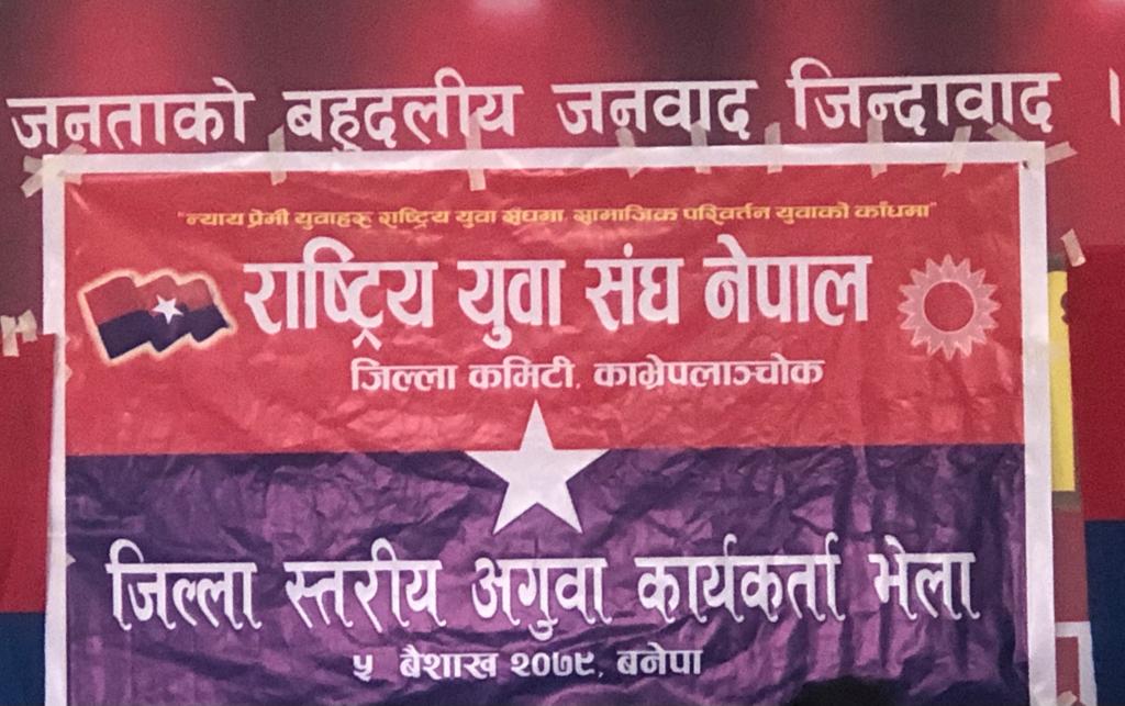 आज सम्पनन जिल्लास्तरीय अगुवा कार्यकर्ता भेलाले राष्ट्रिय युवा संघ नेपाल काभ्रेको संयोजकमा सागर रायमाझीलाई चयन गरिएको छ । त्यसै गरि काभ्रेमा रहेको १३ वटै स्थानिय तहलाई समेटेर युवा संघ जिल्ला कमिटी निर्माण गरिएको छ ।