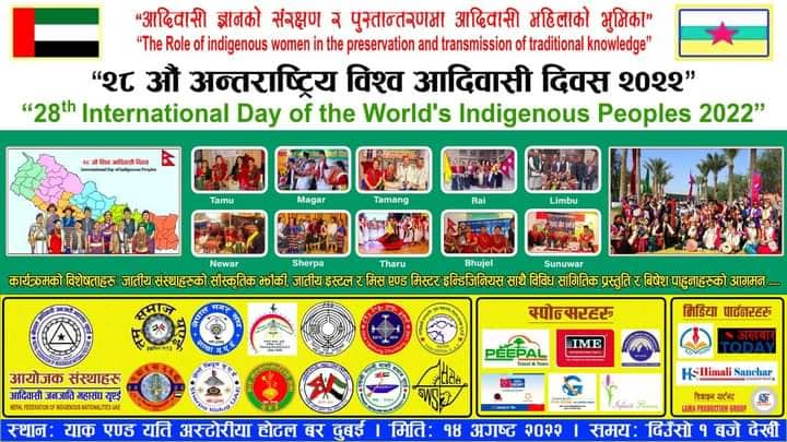 आयोजकका अनुसार आदिवासी ज्ञानको संरक्षण र पुस्तान्तरण आदवासी महिलाको भुमिका भन्ने मुल नाराका साथ दुबई स्थित याक एण्ड यति अस्टोरिया होटल बार मा अगष्ट १४ का लागी कार्यक्रम तय गरिएएको छ ।