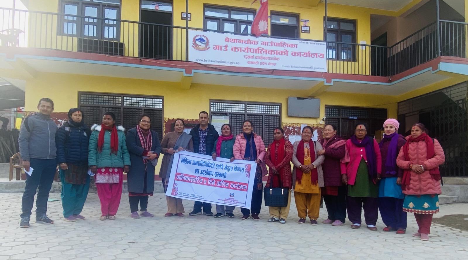 बेथानचोक गाउँपालिका महिला बालबालिका तथा ज्येष्ठ नागरिक शाखाद्वारा आयोजित एक हप्ते तालिम कार्यक्रममा वडा नं. १ देखि ६ सम्मका महिला तथा दलित महिला जनप्रतिनिधिहरुको सहभागिता रहेको थियो । तालिम कार्यक्रम माघ ३ गते शुरुभइ ९ गते समापन भएको हो ।