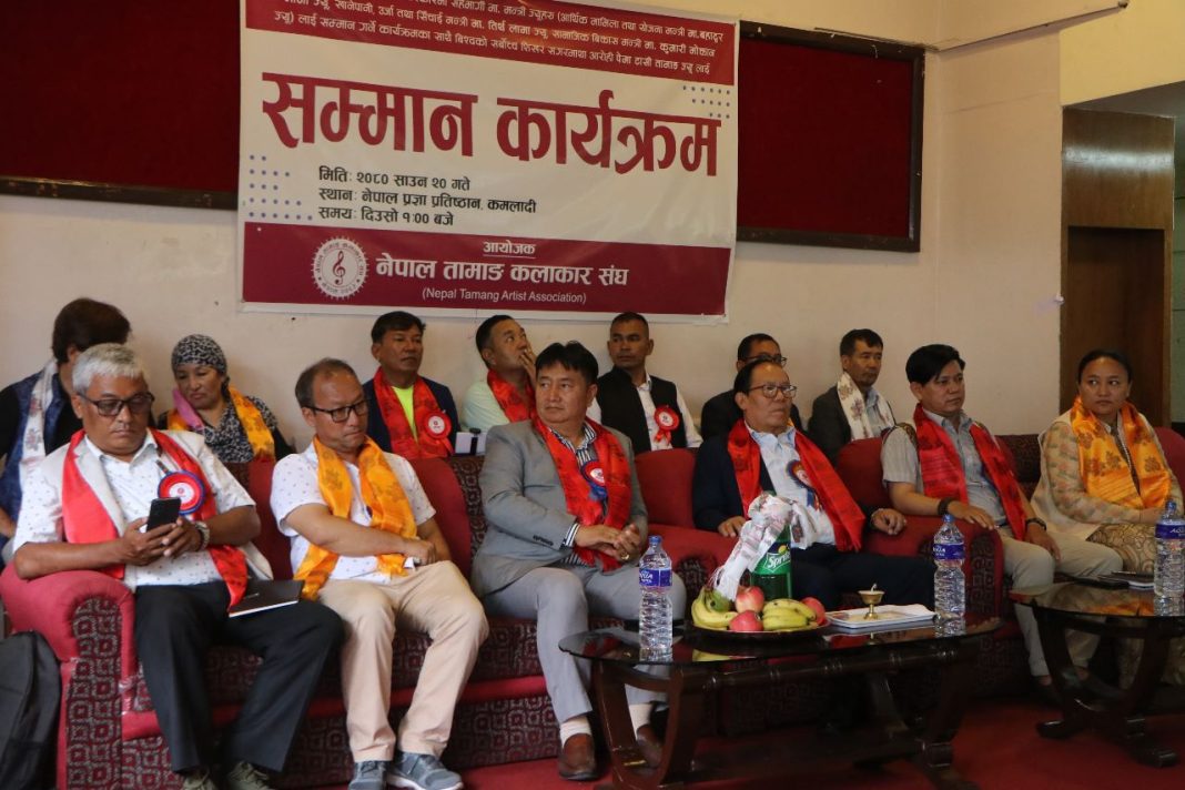 शनिबार काठमाडौं स्थित प्रज्ञा भवनमा एक कार्यक्रमका बीच संघले तामाङ समुदायबाट बागमती प्रदेश सरकारमा सहभागी भएका आर्थिक मामिला तथा योजना मन्त्री बहादुर सिं लामा, खानेपानी, उर्जा तथा सिँचाई मन्त्री तिर्थ लामा, सामाजिक बिकास मन्त्री कुमारी तामाङलाई एकै साथ सम्मान गरेका हुन् । उक्त कार्यक्रममा बिश्वको सर्वोच्च शिखर सगरमाथा आरोही पेमा टासी तामाङलाई पनि सम्मान गरेका थिए । उनी नेपाल तामाङ कलाकार संघ कै सदस्य हुन् उनले बिश्वको सर्वोच्च शिखर सगरमाथामा नेपाल तामाङ कलाकार संघको झण्डा समेत फहराएका थिए ।