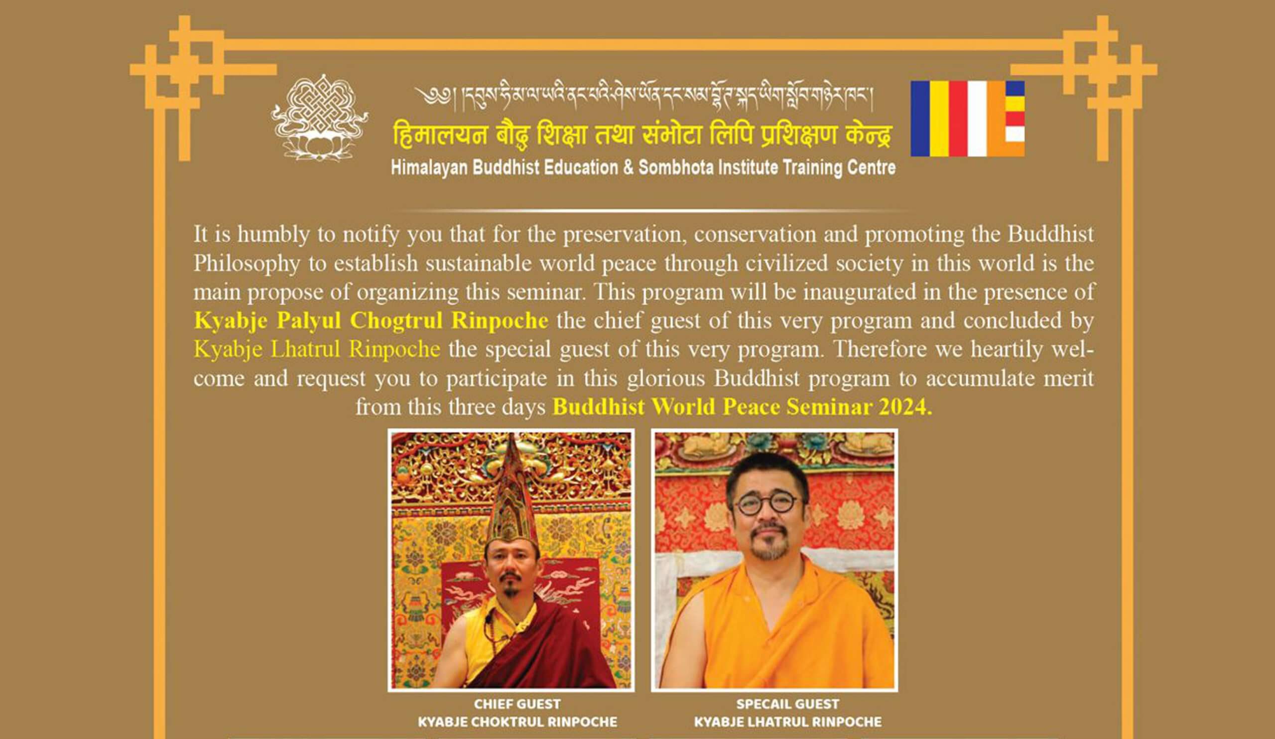 काठमाडौं । हिमालयन बौद्ध शिक्षा तथा सम्भोटा लिपी प्रशिक्षण केन्द्रको आयोजनामा बौद्ध विश्व शान्ति गोष्ठी हुने भएको छ ।