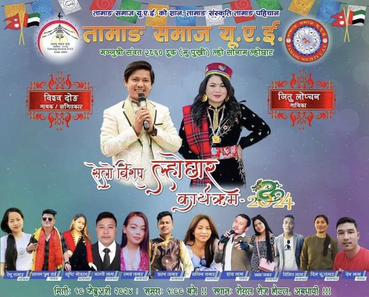 काठमाडौं । मन्जुश्री संवत् २८६० डुक ल्हो (मुपुख्री) सोनाम ल्होछारको अवसर पारेर स्वदेश तथा विदेशमा रहेका विभिन्न संघसंस्थाहरुले ल्होछार कार्यक्रमको आयोजना धमाधम गर्दै आएको छ । यसै क्रममा वैदेशिक रोजगारीको क्रममा युएईमा रहेका तामाङहरुको छाता संगठन तामाङ समाज युएईको आयोजनामा हुन लागेको मन्जुश्री संवत् २८६० डुक ल्हो (मु पुख्री) सोनाम ल्होछार तथा सेलो विशेष कार्यक्रमको तयारी पूरा भएको छ ।