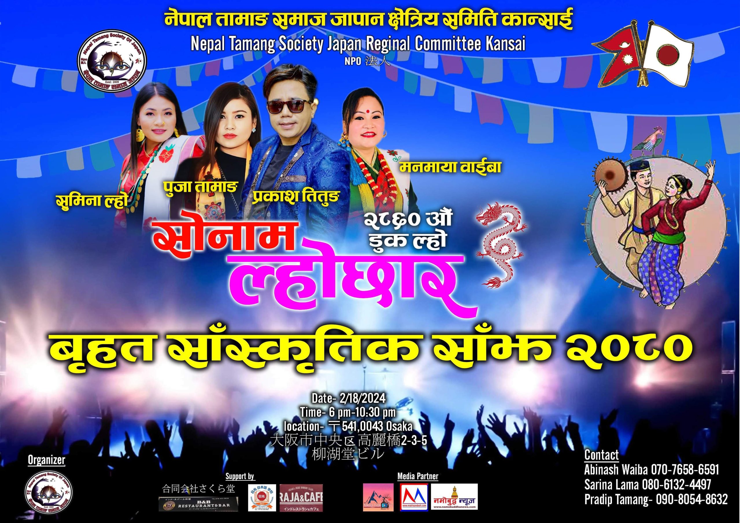 काठमाडौ । मञ्जुश्री संवत २८६० औं सोनाम ल्होछार डुक ल्हो अर्थात ड्रागन बर्षको अवसरमा केही दिन यत्ता नेपाल लगायत अन्य थुप्रै देशहरुमा विभिन्न कार्यक्रमका साथ मनाउने क्रम रहेको छ । यसै क्रममा जापानमा रहेका तामाङहरुको छाता संगठन तामाङ समाज जापान क्षेत्रीय कमिटि कान्साईको आयोजनामा यही फेब्रुवरी १८ तारिखमा सोनाम ल्होछार बृहत साँस्कृतिक साँझ–२०८० हुने भएको छ ।