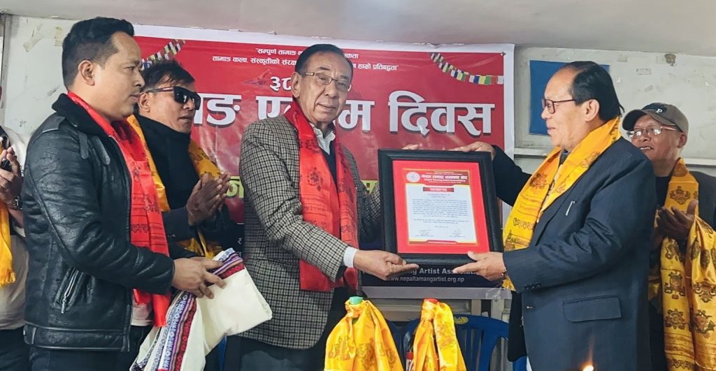 काठमाडौं । सिङ्गो तामाङ कलाकारहरुको छाता संगठन नेपाल तामाङ कलाकार संघको अयोजनामा ३८ औं तामाङ एल्बम दिवस तथा सम्मान कार्यक्रम-२०८० सम्पन्न भएको छ । मंगलबार काठमाडौं चुच्चेपाटीस्थित नेपाल तामाङ घेदुङको संघीय कार्यालयको सभाहलमा उक्त कार्यक्रम सम्पन्न भएको हो ।