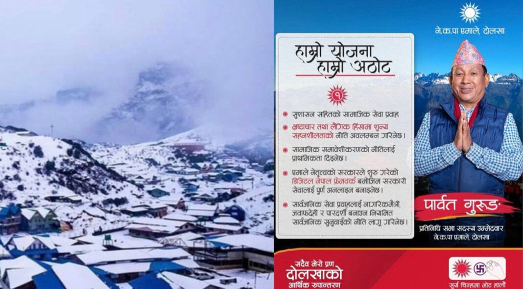 उनले विगतमा आफूले निर्वाह गरेको भूमिकाको स्मरण गराउँदै दोलखाको विकासका लागि निरन्तर पहल गर्ने दाबी गरेका छन्। “दोलखाको समृद्धि नै मेरो लक्ष्य हो,” भन्दै गुरुङले मतदातासँग भावनात्मक र विकासमुखी अपिल गरिरहेका छन्।